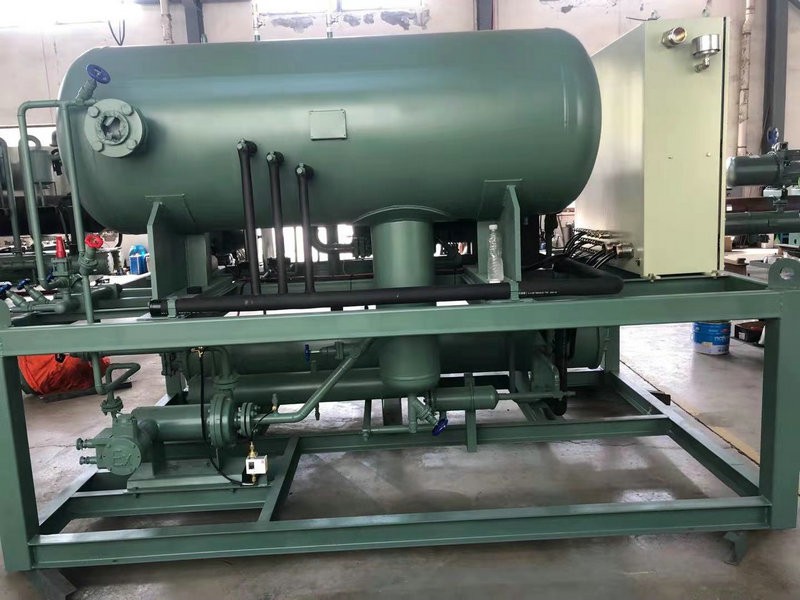 通過制冷劑泵(屏蔽泵)的升壓,把低壓循環(huán)桶中的制冷劑供給客戶蒸發(fā)器(冷量需求端);從蒸發(fā)器中出來的氣液混合物重新回到低壓循環(huán)桶進(jìn)行氣液分離后,純制冷劑氣體回到壓縮機(jī)。
